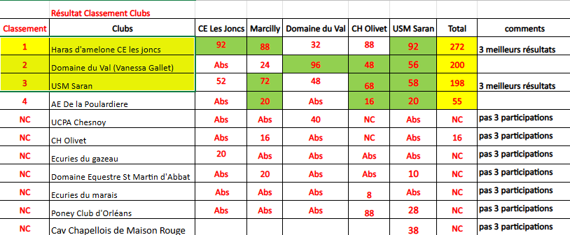 * seuls les 3 meilleurs "résultats étape" sont pris en compte pour le classement